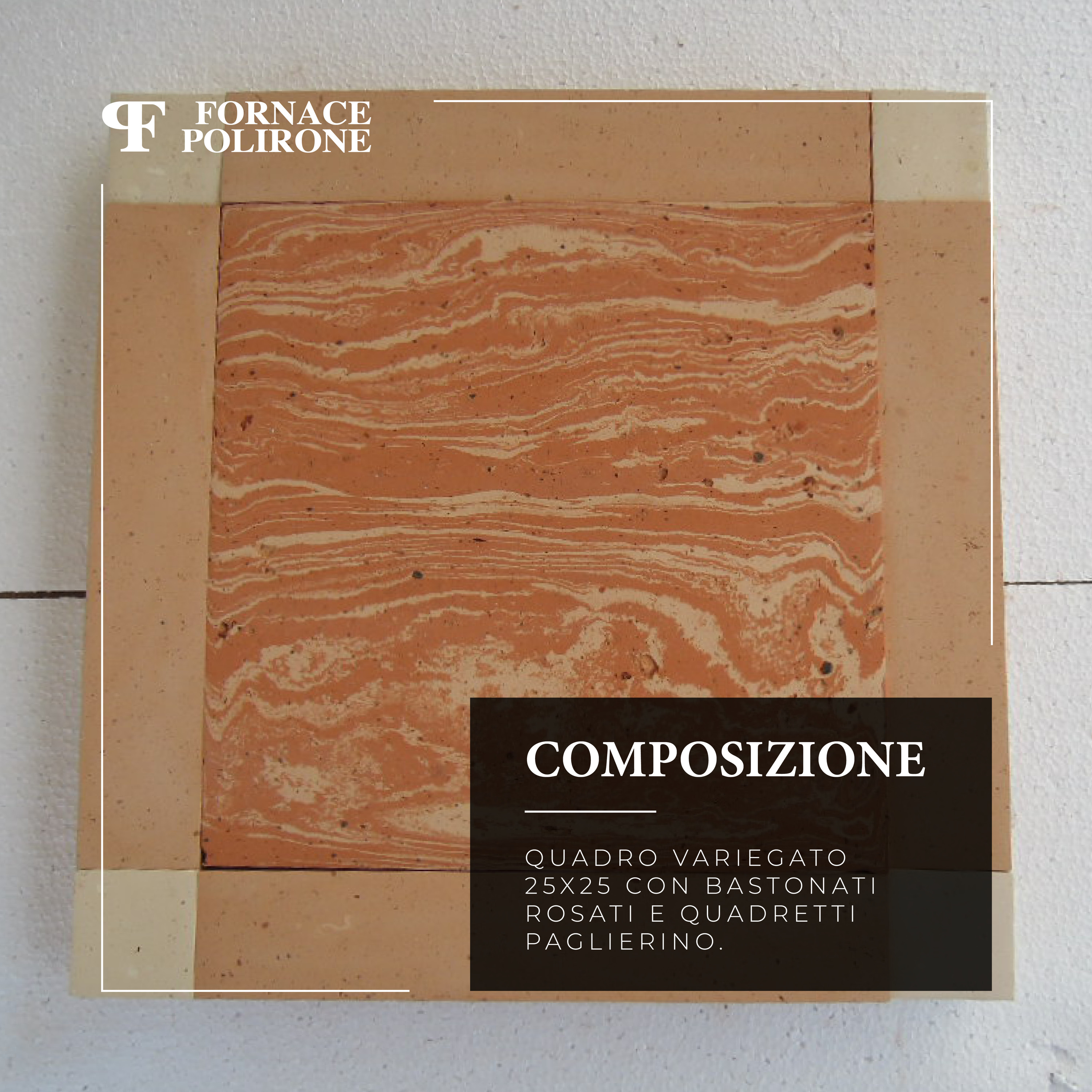 • Quadro variegato 25x25 con bastonati rosati e quadretti paglierino.