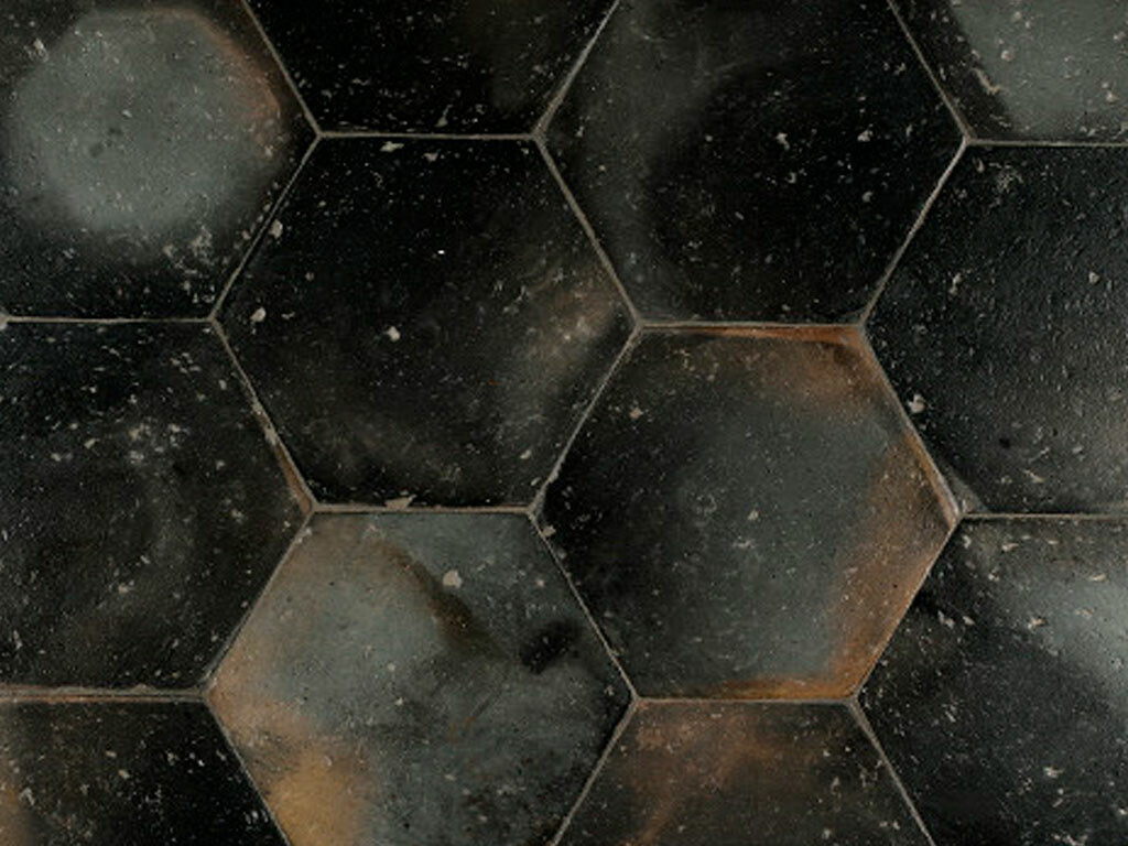 Mattonelle nere ottenute per cottura in riduzione in forno. Non contengono ossidi o coloranti. L'effetto ottenibile è stonalizzato o completamente nero.